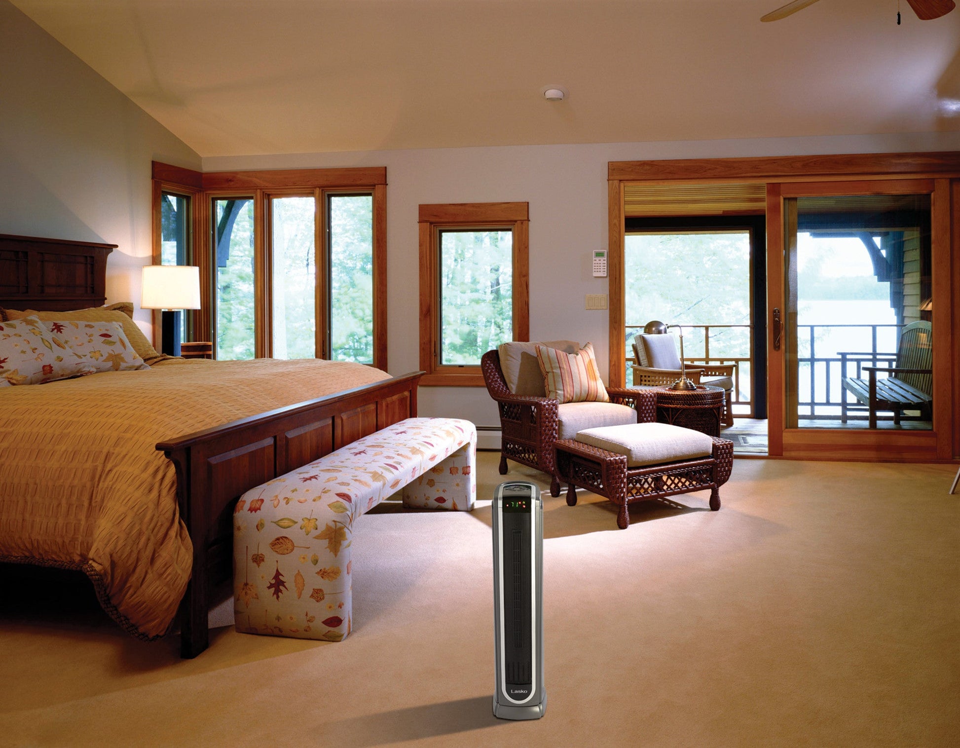 Lasko 1500W Ceramic Tower Space Heater with Logic Center Digital Remote, 5572, Black