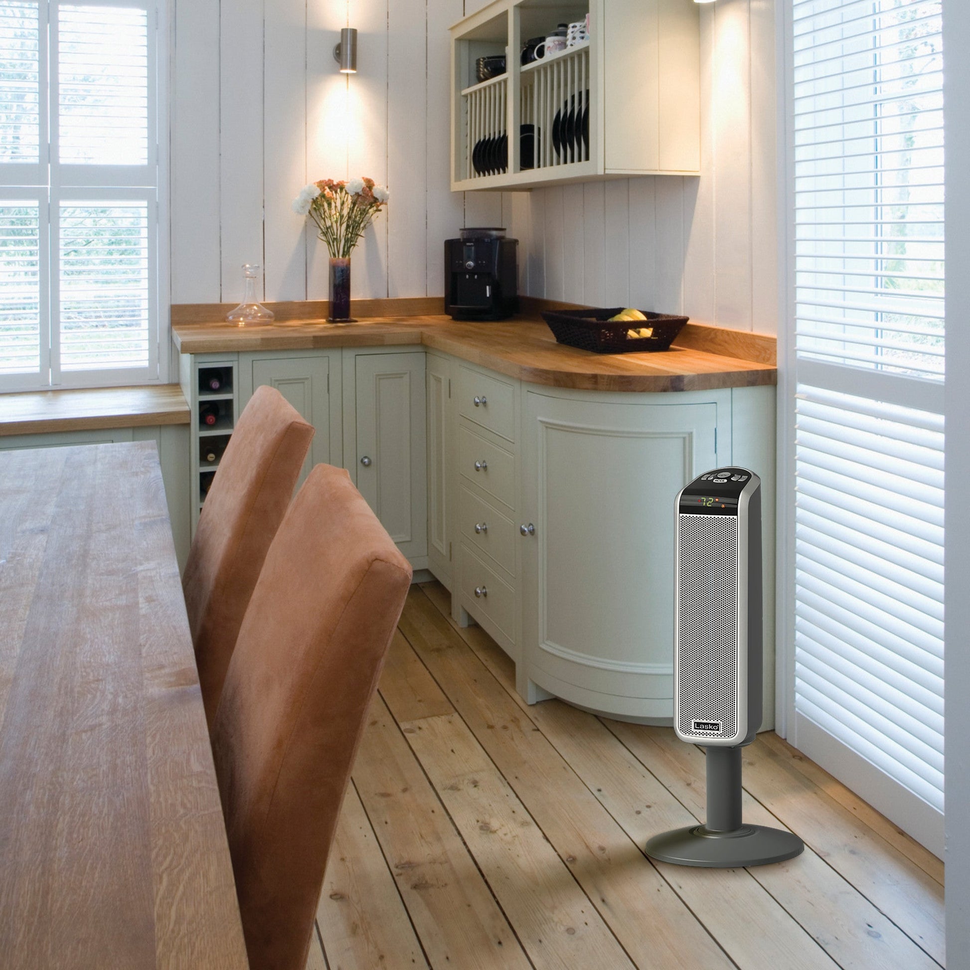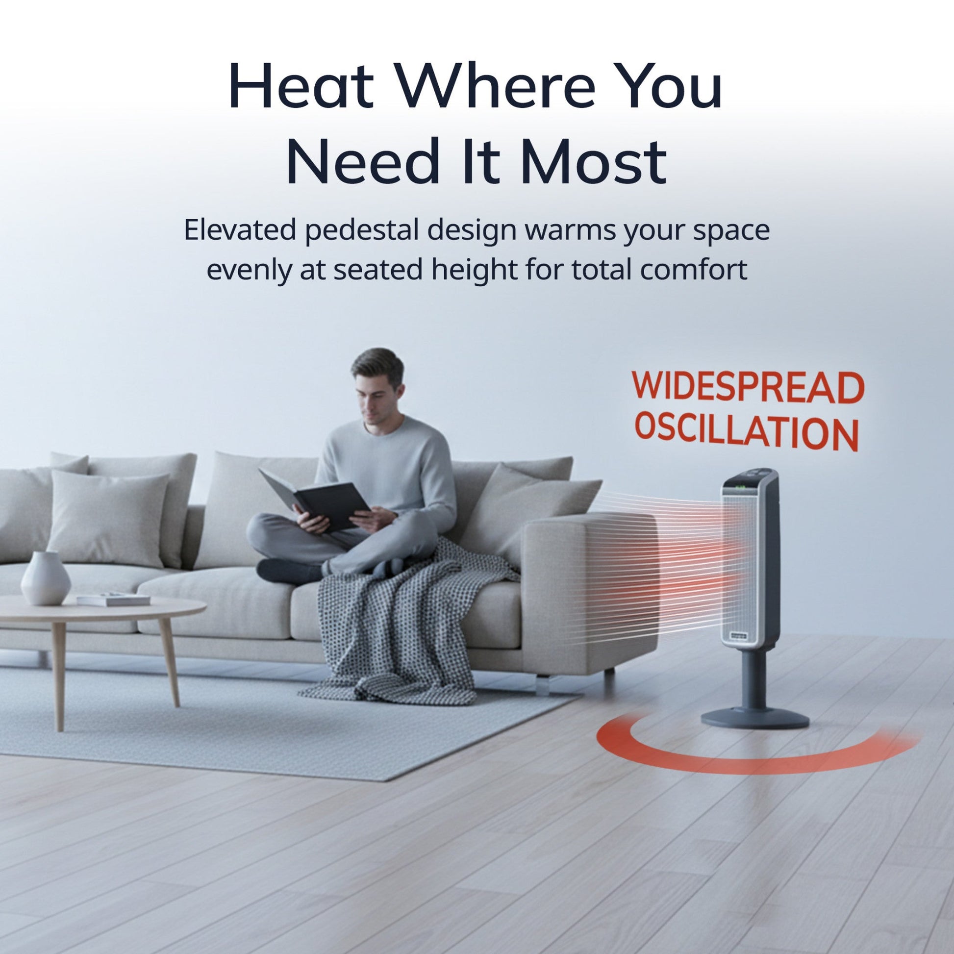 Stay warm and comfortable with the Lasko Digital Ceramic Pedestal Indoor Electric Space Heater. Evenly warms most rooms, thanks to an elevated design, which brings the heat where you need it most--at seated height. This 1500-watt heater has an adjustable thermostat mode and two heat settings. A multi-function digital remote gives you total control--even from across the room. This space heater is ETL listed and other safety features include automatic overheat protection and cool-touch housing. Features easy-to-read digital display, 8-hour automatic shut-off timer and widespread oscillation. Simple assembly required. Ideal for medium sized rooms. Features a 6-foot power cord. Comes with a 3-year limited warranty. For your safety, do not use space heaters with extension cords. Condition: New