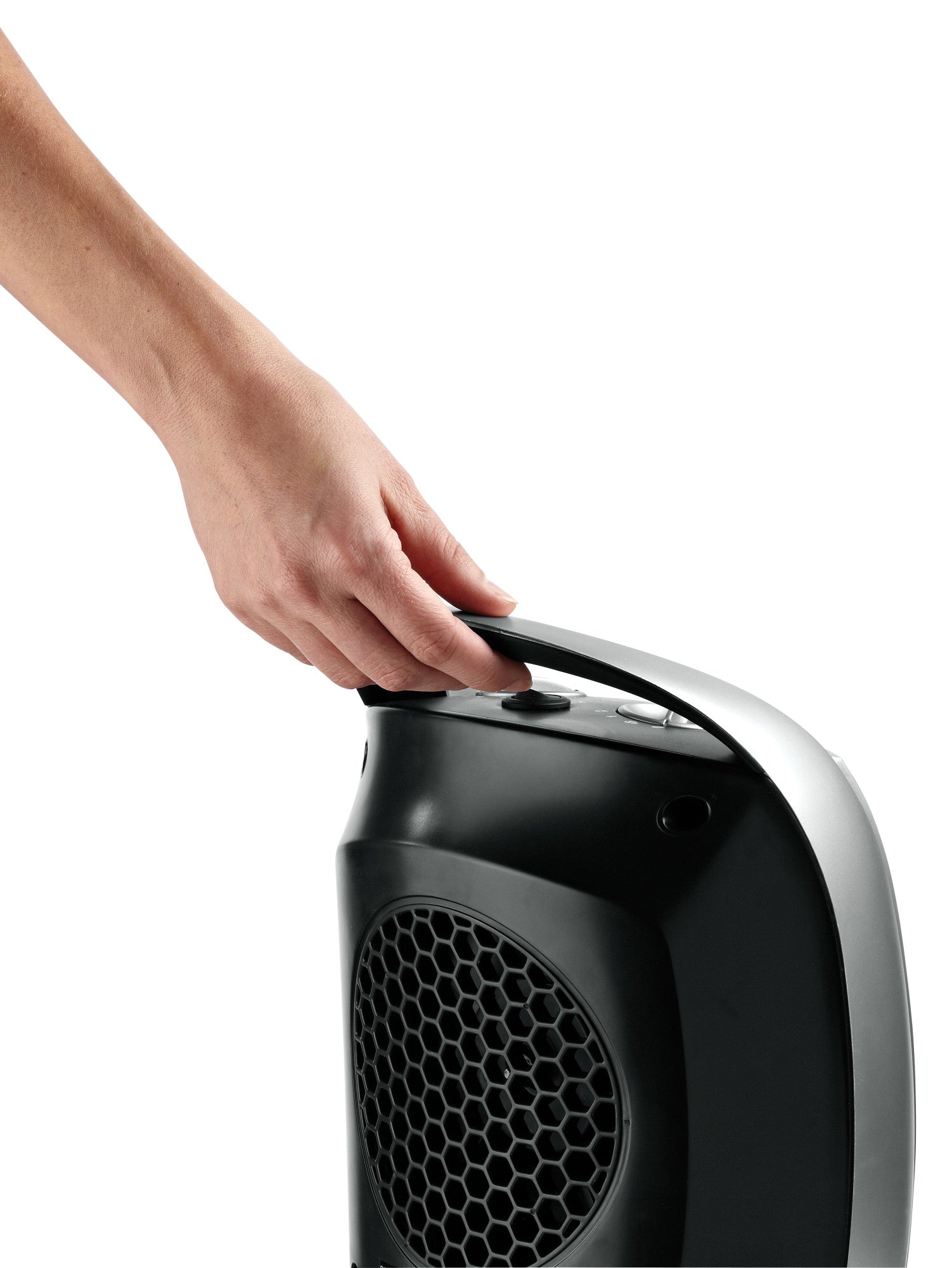 A dependable basic, this oscillating ceramic space heater provides 1500 watts of comforting warmth. Features top-mounted manual controls with 2 quiet heat modes, a fan only mode and an adjustable thermostat. Widespread oscillation evenly distributes a comforting warmth around the room. The convenient carry handle and lightweight design make it easy to move from room-to-room in your home. This compact electric space heater can be use on a table top or floor and is perfect for the bedroom, living room or home office. Built-in safety features include overheat protection, a safe ceramic element and a cool-touch exterior. Comes fully assembled with a 3-year warranty. Condition: New