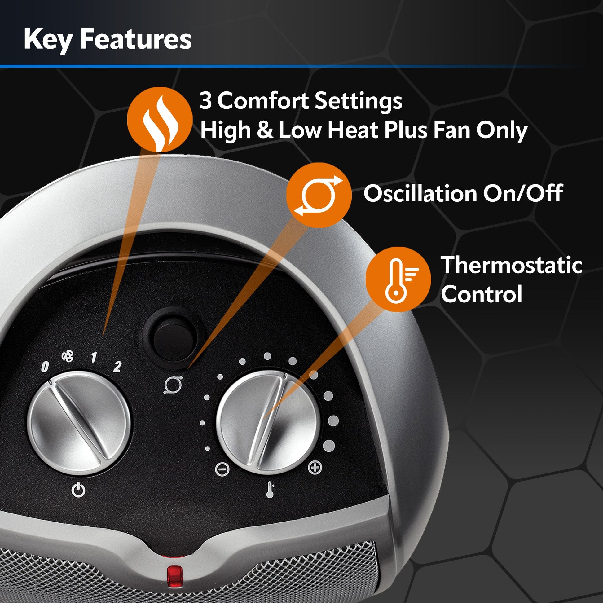 Lasko 1500W Electric Oscillating Ceramic Tabletop Space Heater with Adjustable Thermostat, 5409, Gray