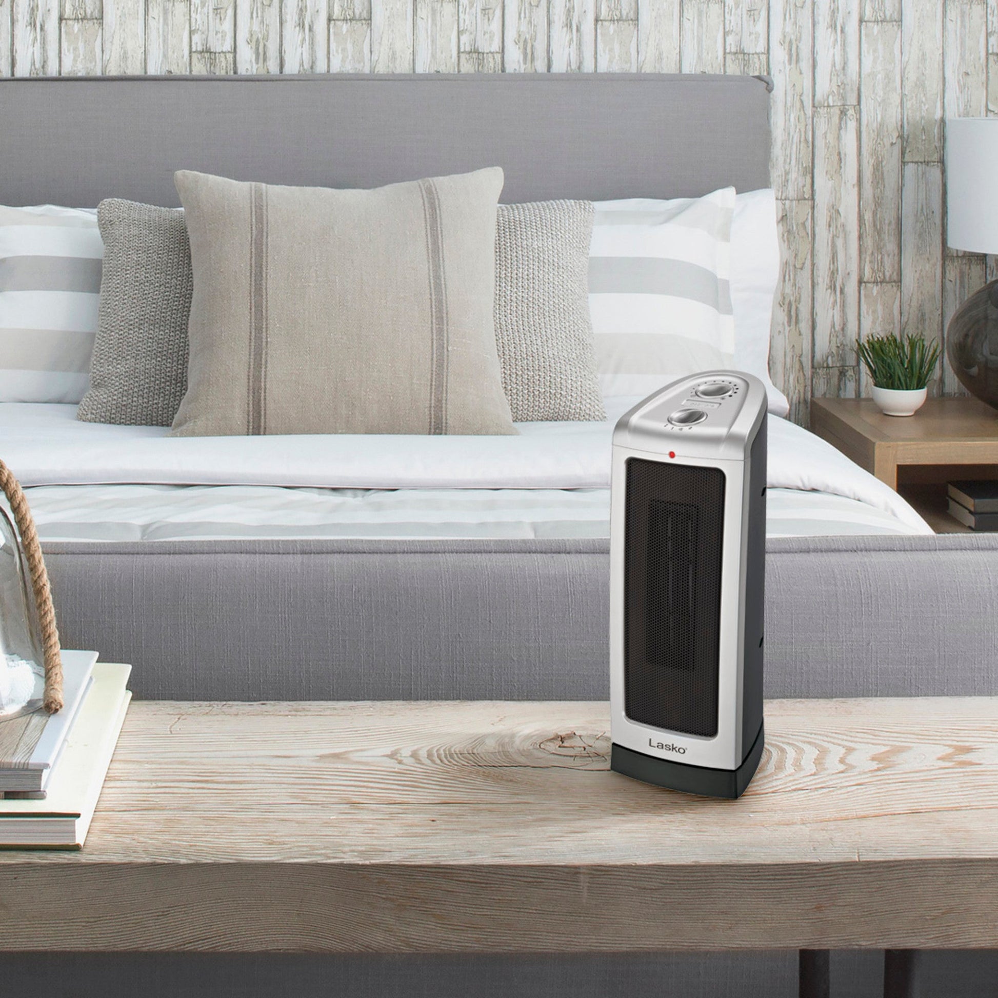 Lasko 1500W Electric Oscillating Ceramic Tower Space Heater with Thermostat, 5307, Silver