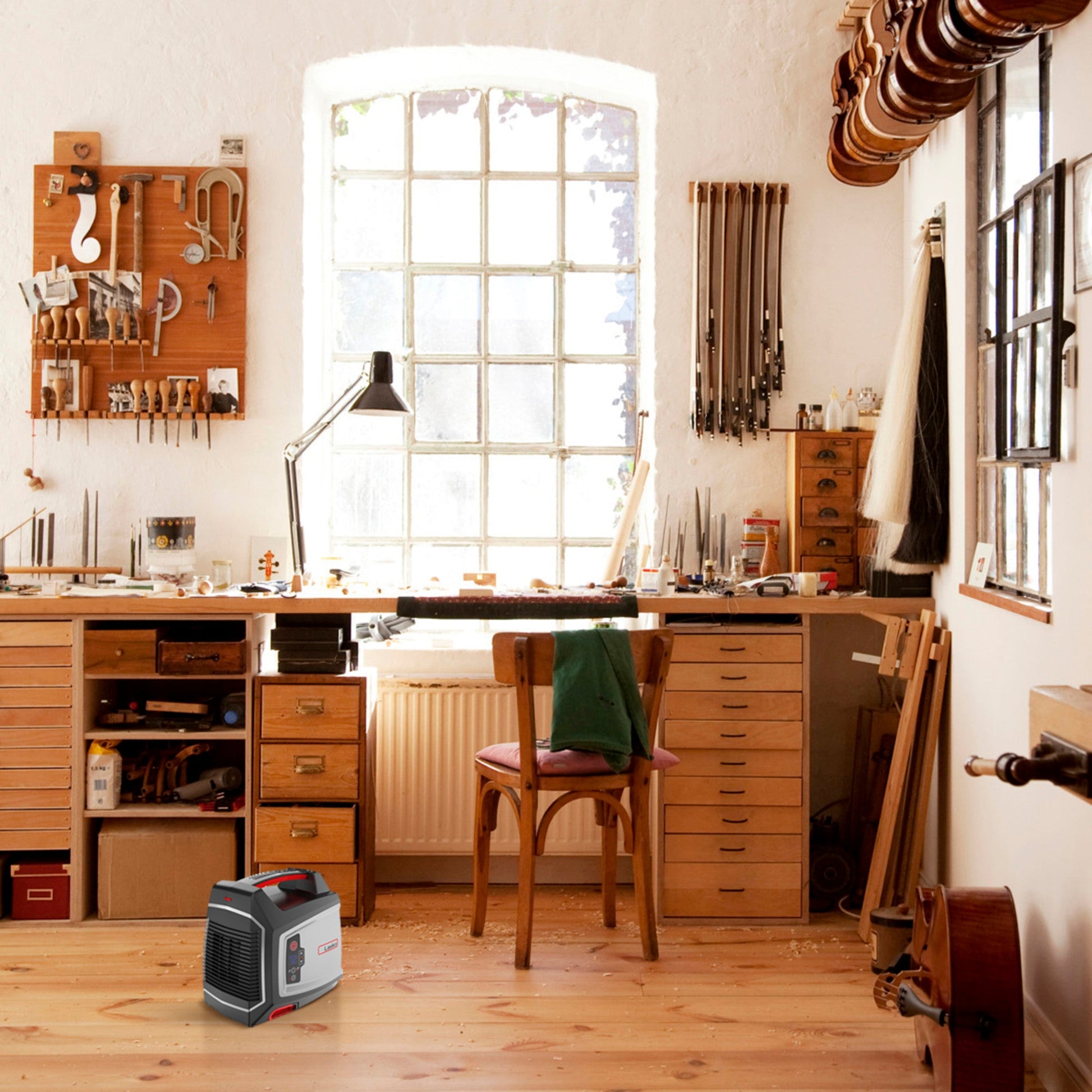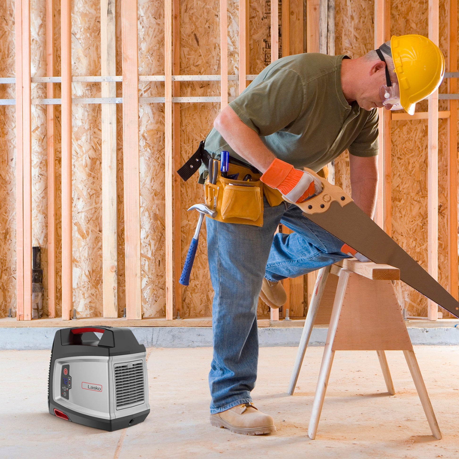 Rugged construction, high velocity heat delivery, and safe ceramic warmth are hallmarks of the Elite Collection Ceramic Utility Heater from Lasko. The unique pivoting legs allow you to direct this space heater's 1,500 watts of warmth upwards toward standing work spaces. It has an adjustable digital thermostat control, which works on both the high and low heat settings. Great for use in garages, shops, and basements, it's made to be taken wherever you need some extra warmth with its easy-grip handle. The filter compartment is simple to access and makes regular maintenance a breeze, which maximizes the portable heater's efficiency. An 8-hour timer adds convenience--simply set it for your desired run time, then the heater will automatically shut off for comfort and peace of mind. Built-in safety features include overheat protection, cool-touch exterior housing, and tip-over safety switch. Comes fully assembled. 3-year limited warranty.