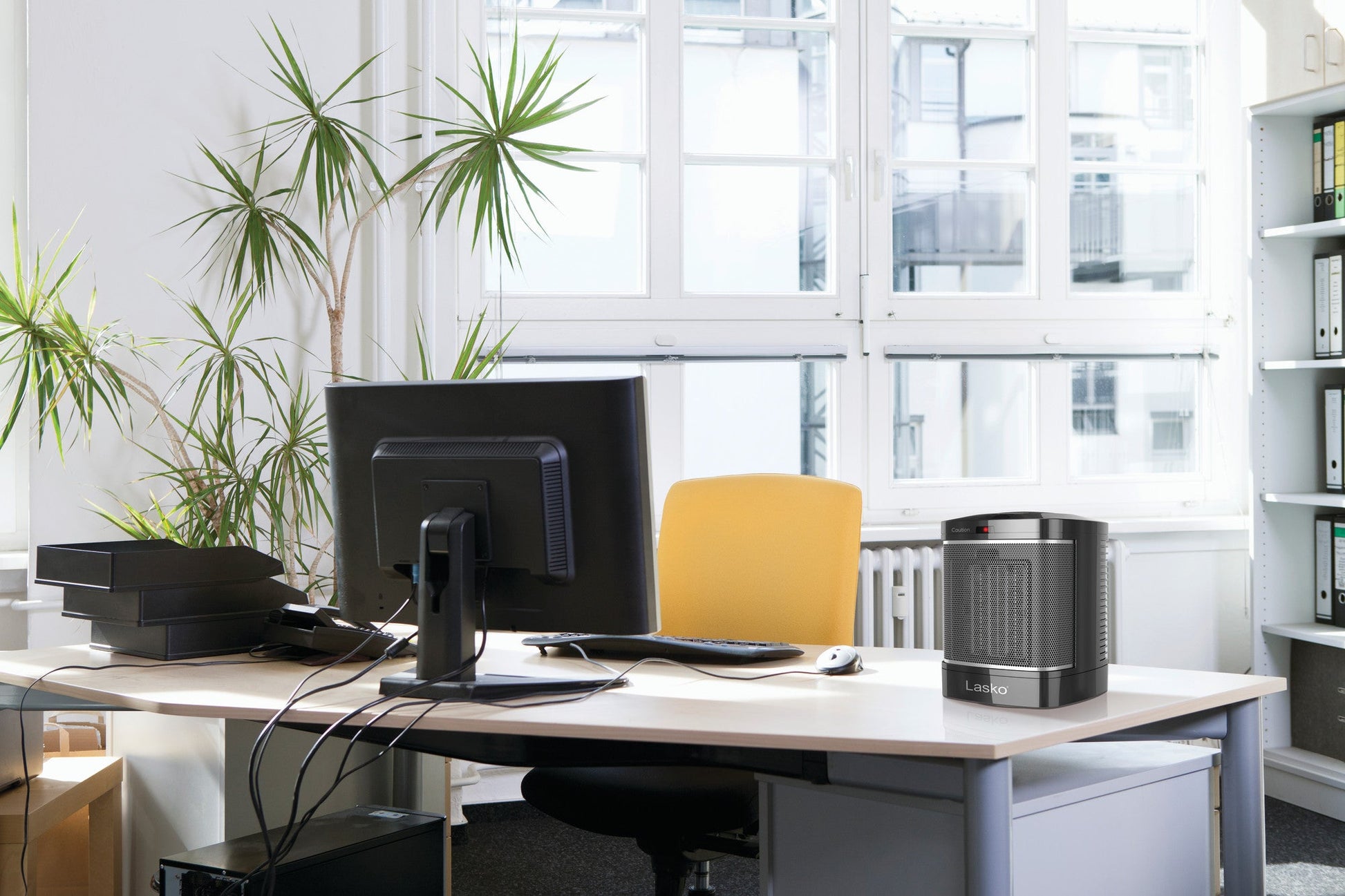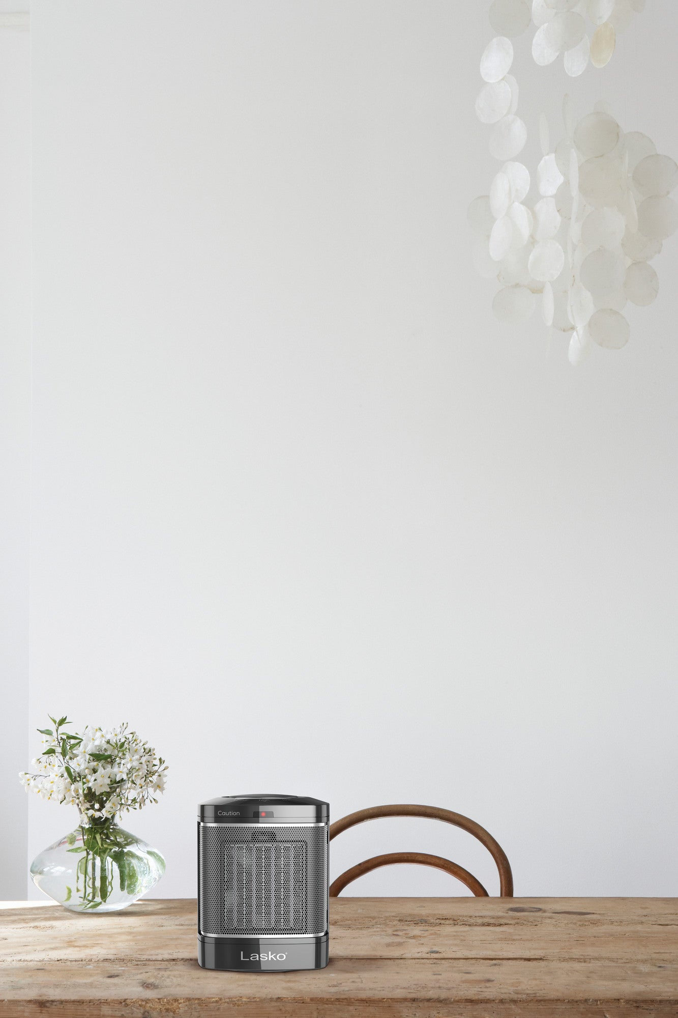 Lasko's Simple Touch ceramic space heater is perfect for desktop or tabletop, and delivers 1500 watts of quick, fan-powered ceramic warmth. This little portable heater features key safety features, including a cool-touch exterior, self-regulating ceramic element, and automatic overheat protection. To operate, choose from 2 steady-on settings (high and low) or a single-touch setting that provides 1-hour of high heat before shutting itself off. Comes fully assembled. 3-year limited warranty. For indoor use only. Condition: New