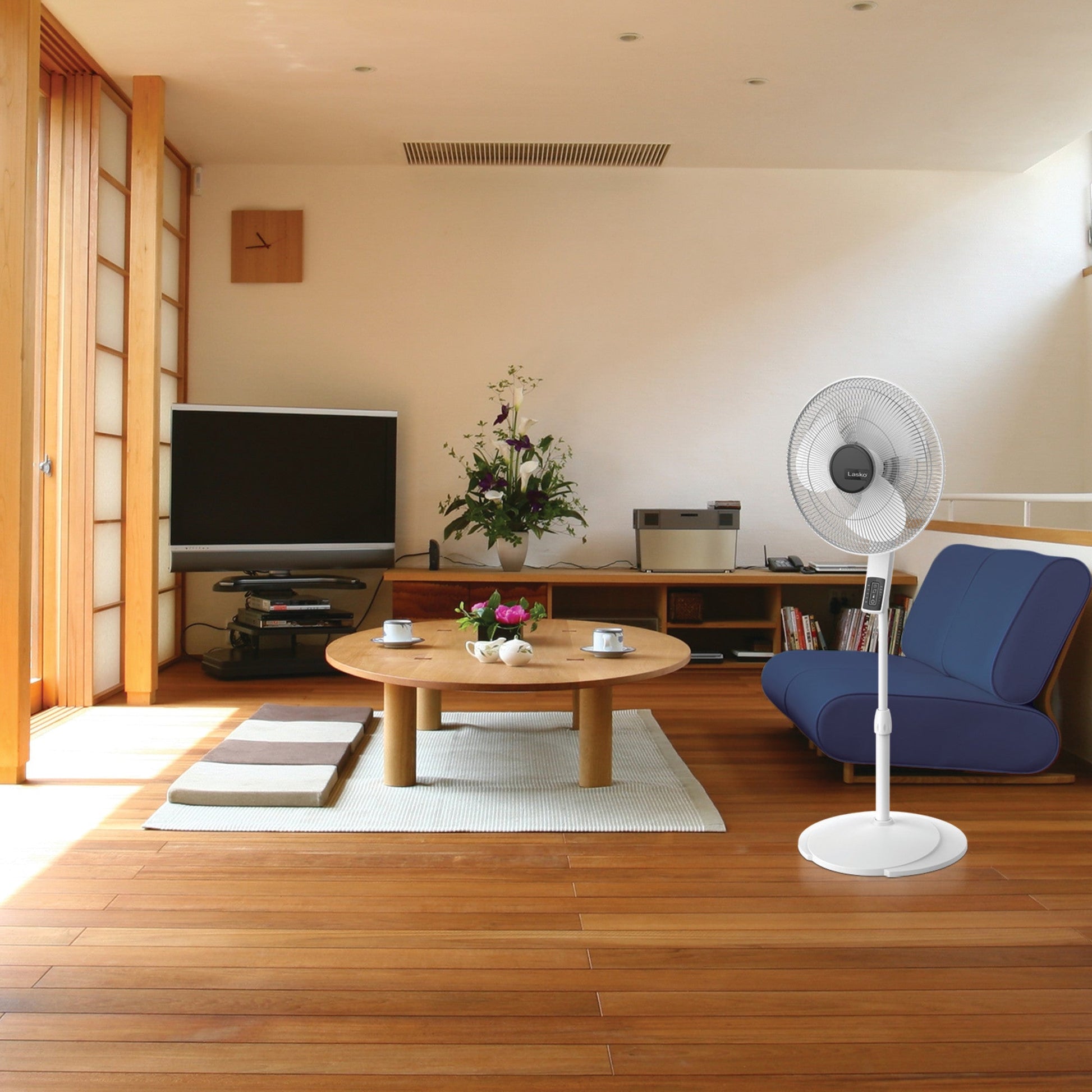 You can truly customize the flow of air around your space, thanks to the tilt-back fan head, optional oscillation, and adjustable height. This portable stand fan also comes with premium features like a programmable, auto-off timer which can be set for up to 7 hours. The adjustable thermostat mode automatically turns the fan on or off based on room temperature.? The handy remote controls all fan functions, and has a convenient storage area on the fan. Because it includes The Blue Plug? safety fuse technology, this fan is a safe and an energy-efficient option. 1-year limited warranty.