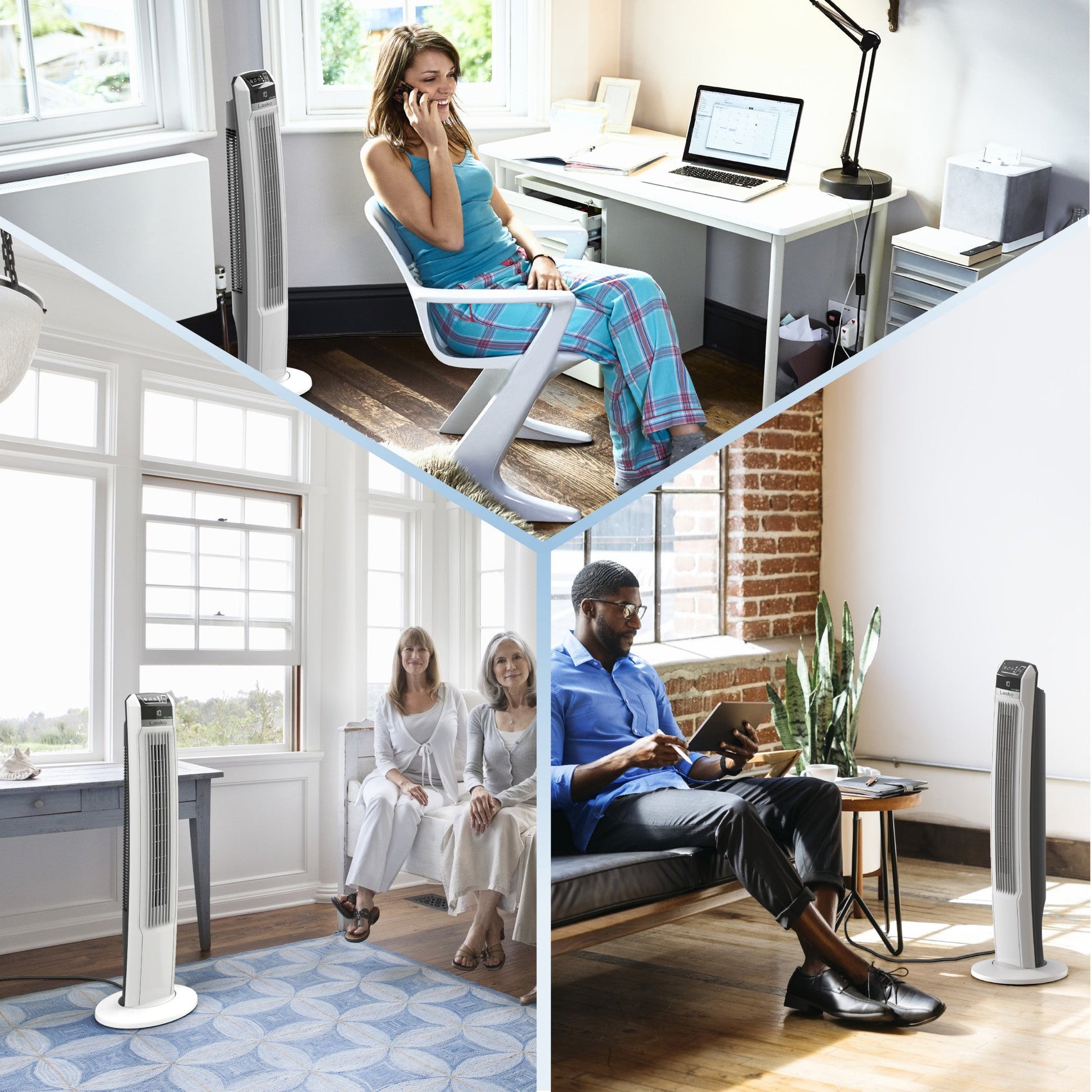 Lasko 42" 12-Speed EcoQuiet DC Motor Tower Fan with Remote Control, T42710, White