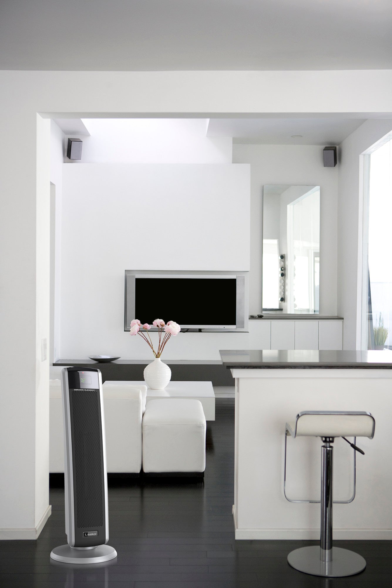 Stay warm and comfortable all season long with the Lasko 5586 Digital Ceramic Tower Heater. This powerful electric space heater delivers 1500 watts of soothing warmth with an elongated ceramic heating element and penetrating air velocity that quickly heats your bedroom, living room, or home office. The easy-to-use electronic controls and digital display make it simple to customize your comfort with two quiet heat settings¡ªhigh and low¡ªplus an auto setting that maintains your desired temperature.