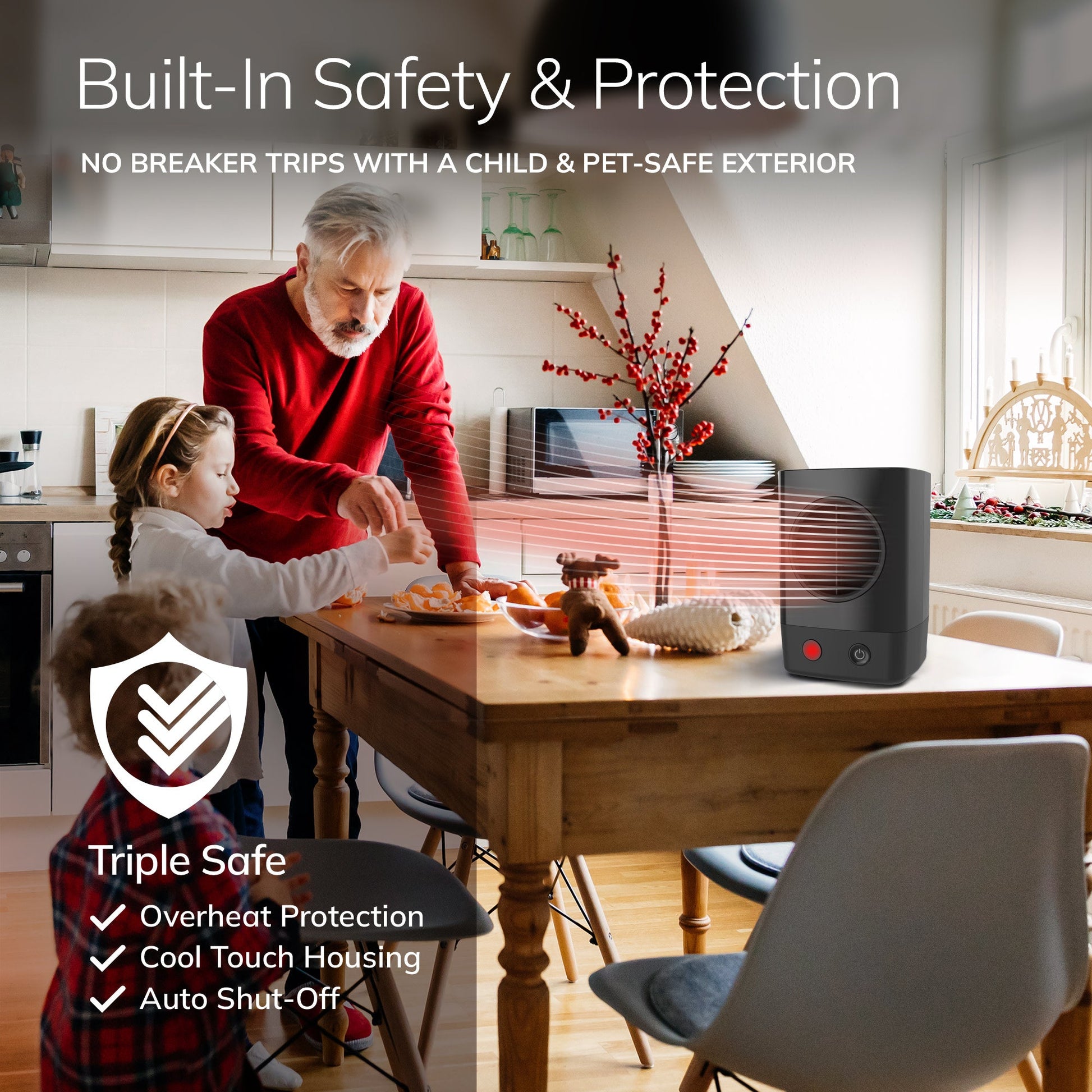 Your safety is our priority. The MyHeat Mini is ETL Listed and equipped with Overheat Protection, a cool-touch exterior and a safe ceramic element, allowing worry-free use for extended periods.
