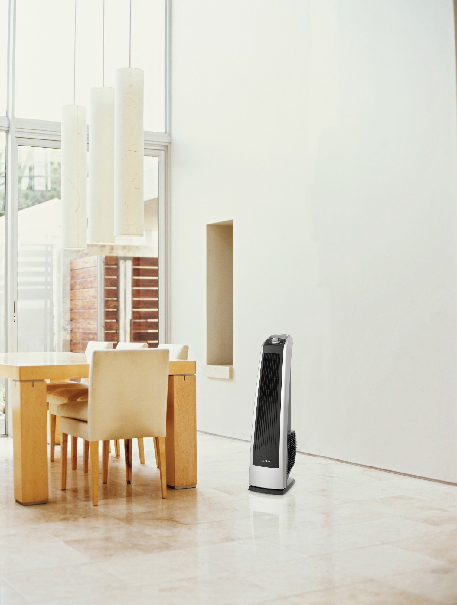 This powerful high-velocity fan from Lasko has a space-saving profile and sleek design. Features simple, top-mounted, manual controls with 3 powerhouse speeds for maximum performance. Select widespread oscillation for broad room coverage, and directional louver controls for precision air delivery to customize airflow in your space. The easy-grip handle makes it easy to move this fan from room to room and bring cooling airflow where it is needed most. With durable construction and powerful air velocity, this fan is ideal for large busy areas, like garages and workshops. Condition: New
