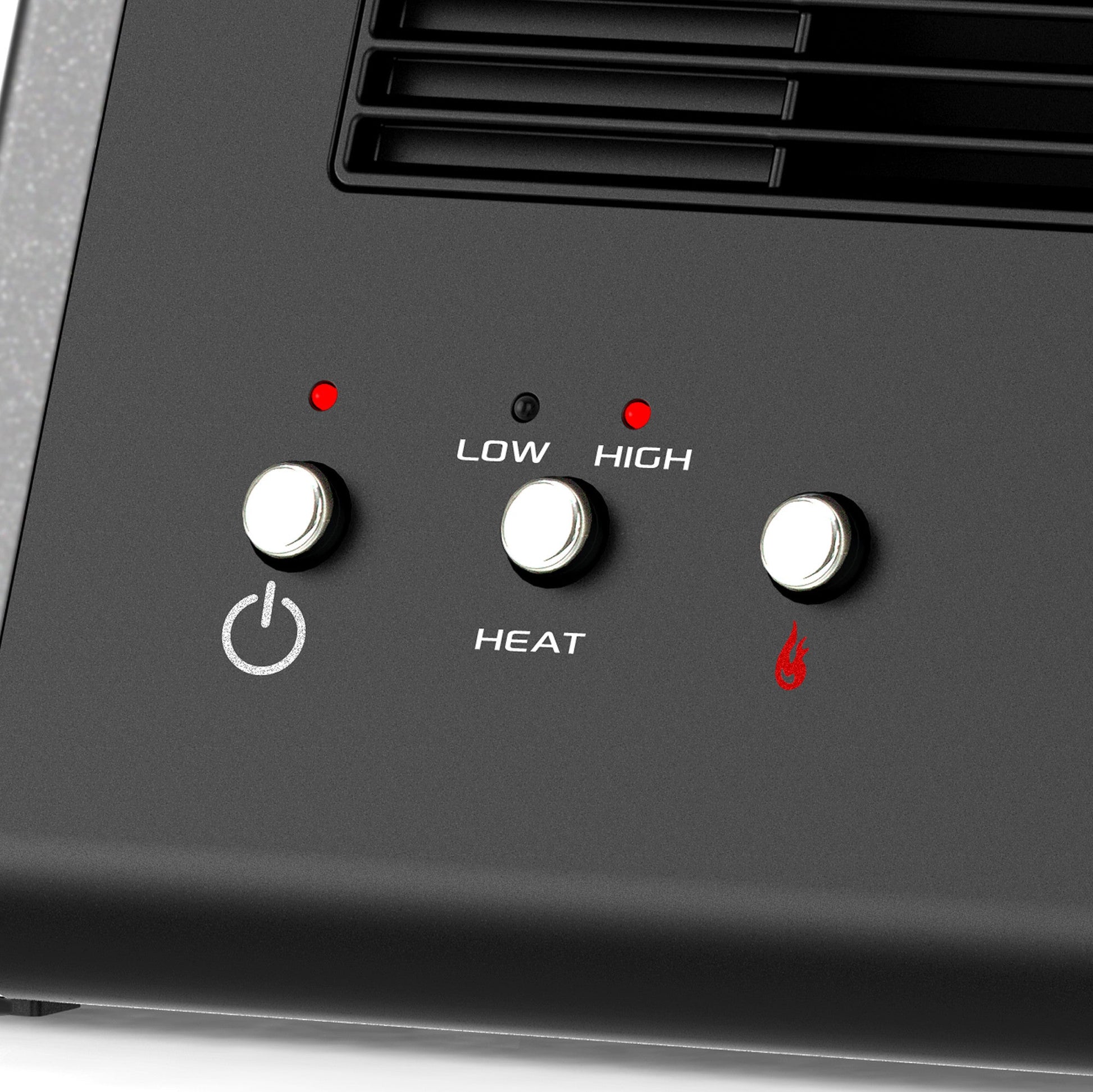 Add instant ambience of a fireplace to any room with Lasko's Ultra Ceramic Fireplace Heater. An ideal solution for a secondary heating source anywhere in your home, it has a self-regulating ceramic element along with a quiet blower system that quickly circulates up to 1500-watts of heat throughout any room. This Lasko ceramic fireplace heater features two heat settings to accommodate your personal level of comfort. For safety, it has a cool-touch window and exterior to prevent injury. An overheat sensor automatically shuts off the unit when maximum heat is detected. Additionally, this portable fireplace heater has a "flame only" setting that offers just the ambiance of a fireplace during any season. The space-saving design makes portability from room to room quick and easy and fits well into any room--just plug directly into a wall outlet and get cozy!